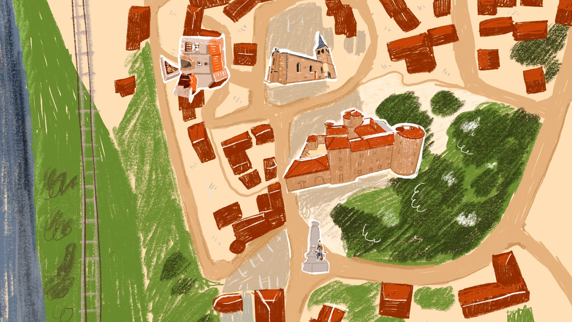 Les Rives d’Aurec, the organization managing the Château d’Aurec (a cultural and community hub including a museum, coworking spaces, and a fab lab), developed an interactive visitor experience through the historic village and castle. I expanded the project by designing a tablet application that guides visitors step-by-step through a heritage-based treasure hunt combining historical quizzes and on-site challenges in the castle courtyard. I worked closely with the local team to refine the game mechanics and puzzles, and created the app’s interface, illustrations, and visual flow.