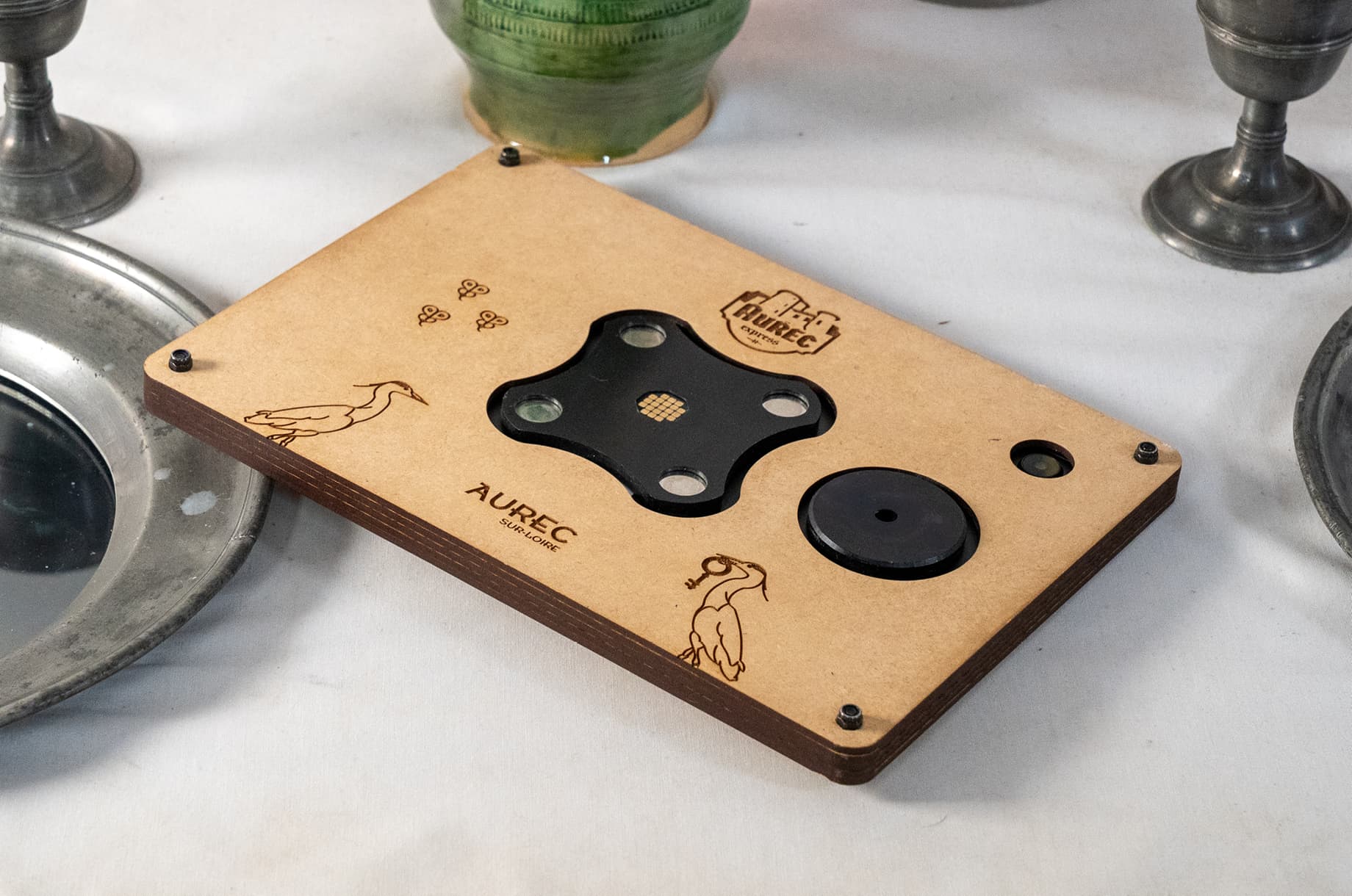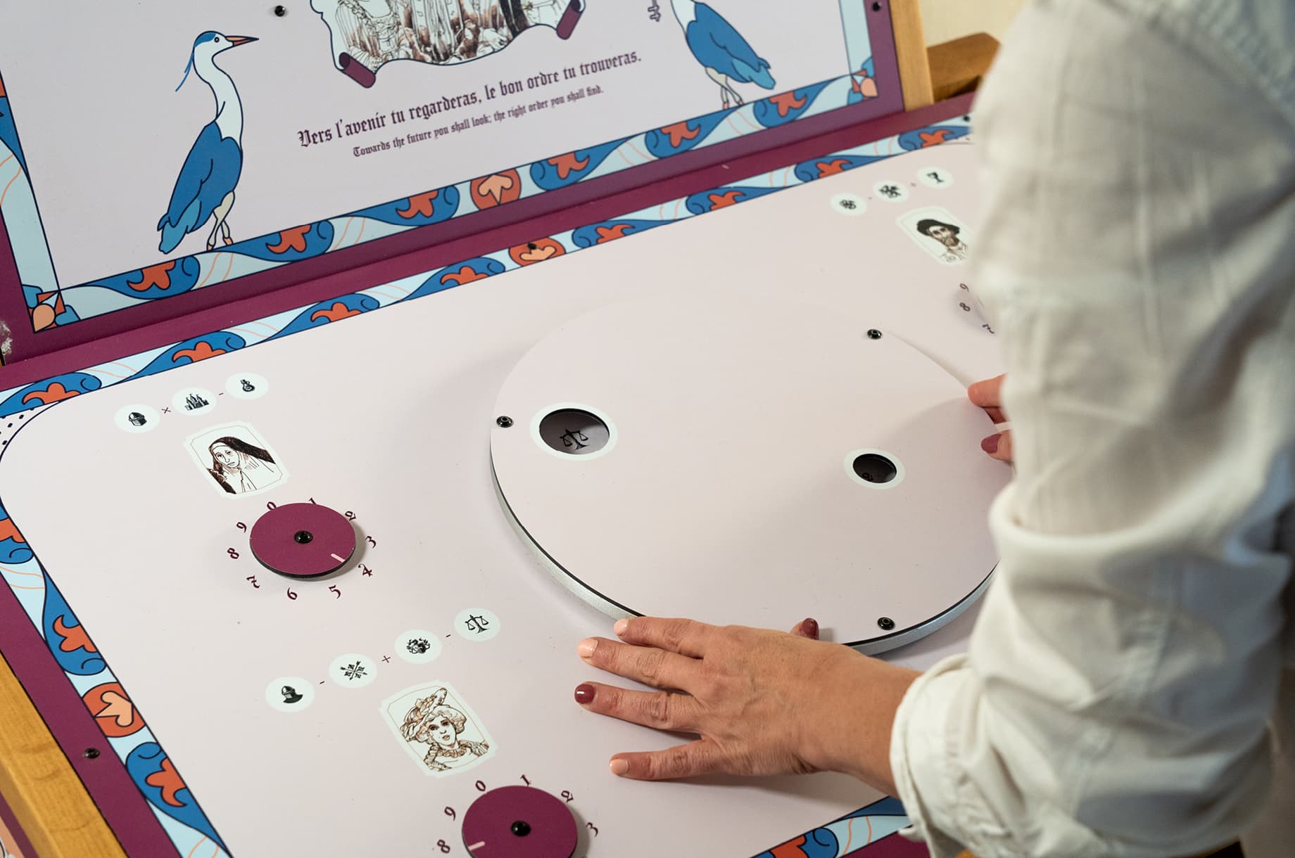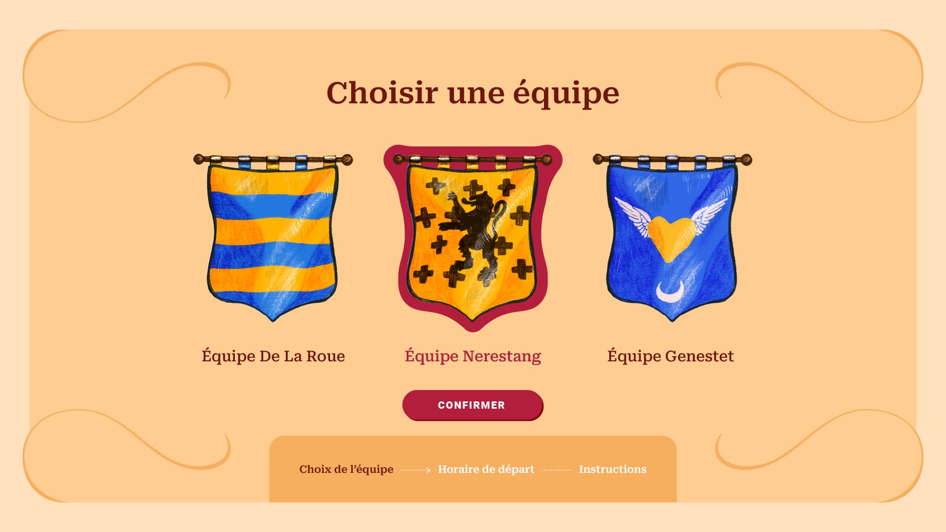 Un score est calculé en fonction du temps de l’équipe et des bonnes réponses. J’ai également conçu le design des bornes de réflexion et supervisé la fabrication auprès de Christophe Garnier, artisan local, qui a utilisé des matériaux et savoir-faire traditionnels pour une intégration harmonieuse dans l’environnement médiéval.