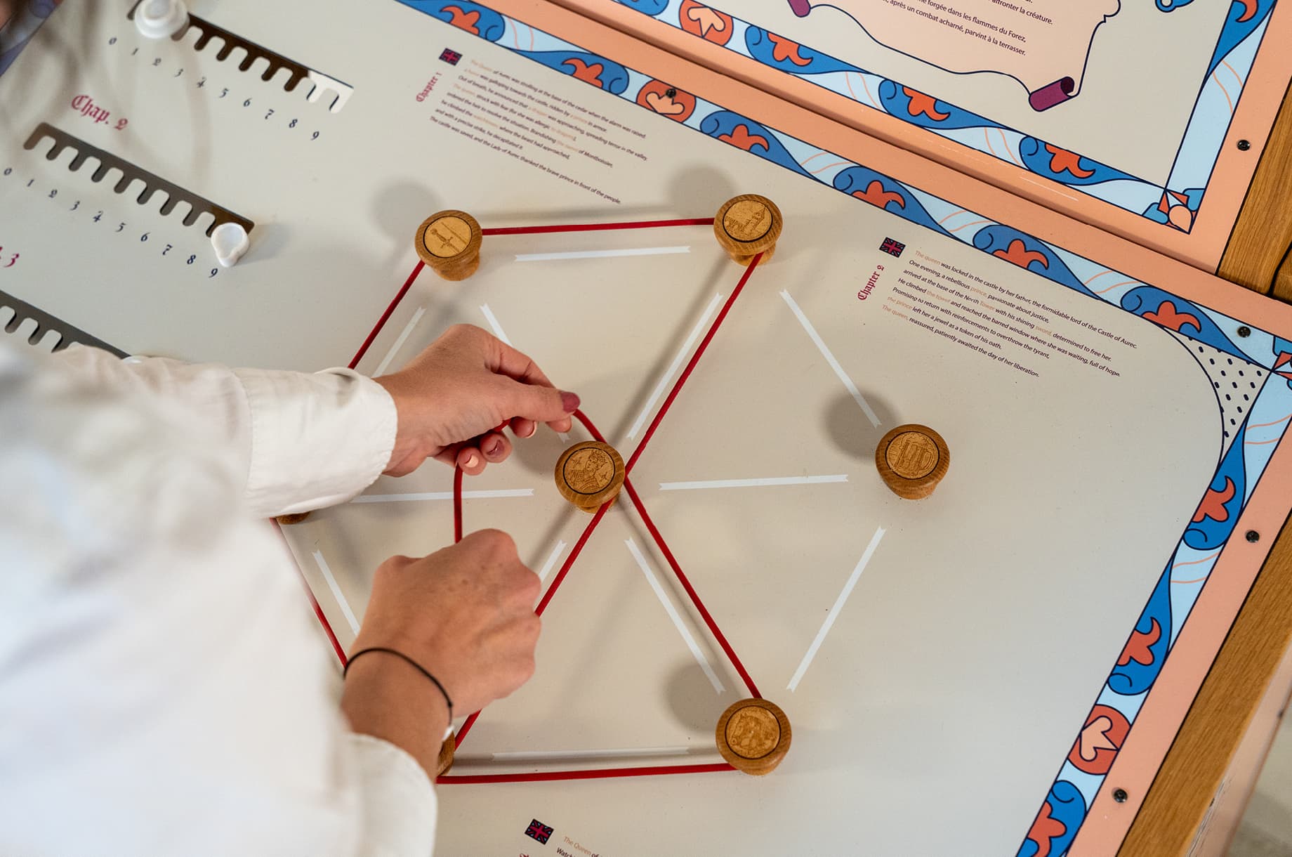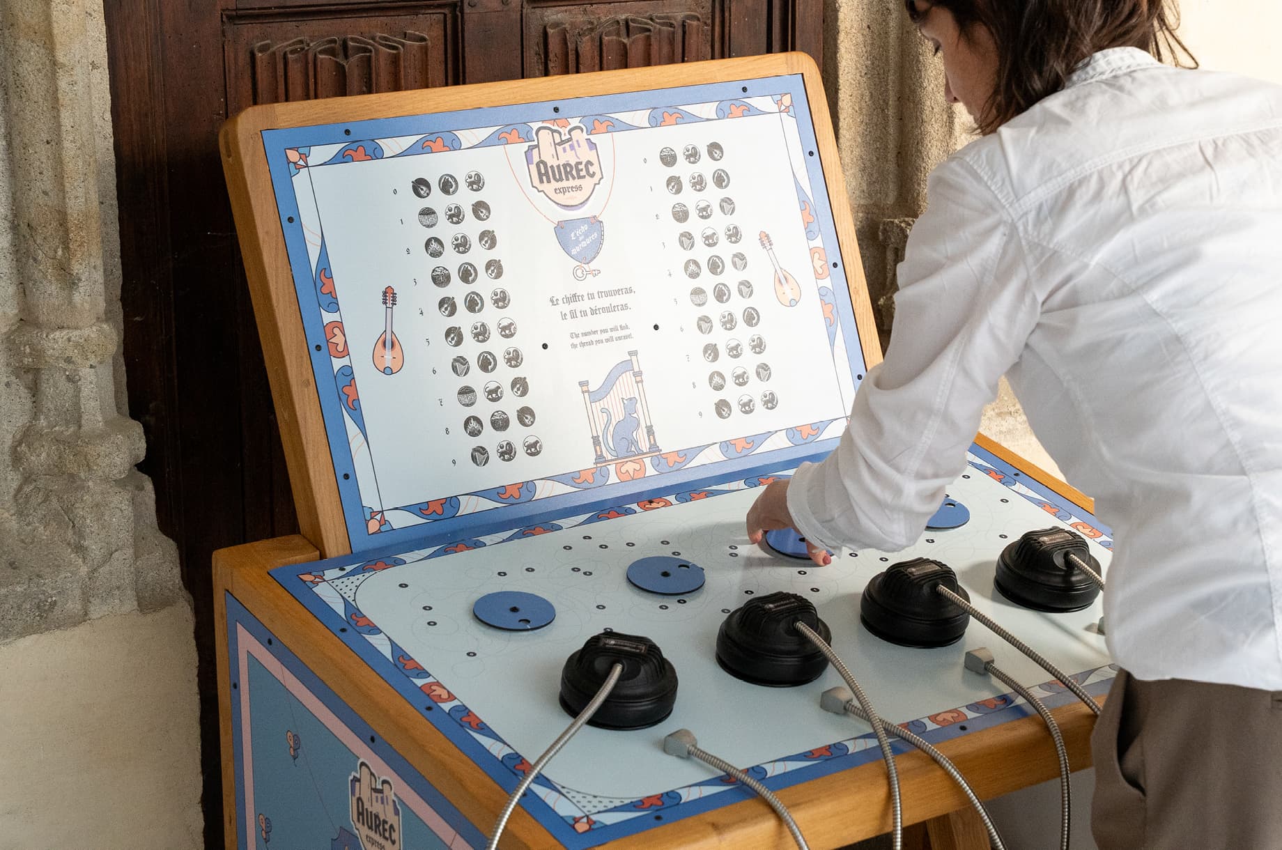 Visitors earn a score based on their team’s time and correct answers, while handcrafted interactive stations — designed in collaboration with local craftman Christophe Garnier — were built using traditional materials and techniques to ensure seamless integration into the medieval setting.