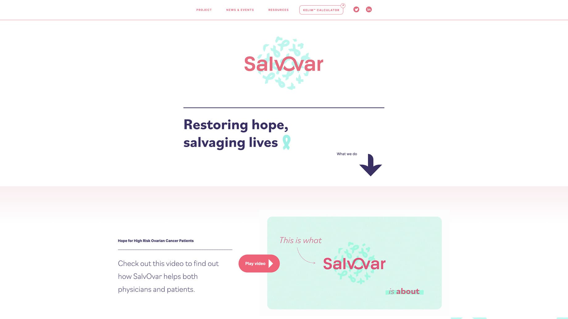 I had the pleasure to create the visual identity, web design, and a motion design video for the SalvOvar program, supported by the European Commission. SalvOvar is an ovarian cancer research project led by the HCL in Lyon (university hospitals), aimed at diagnosing the absorption of treatment toxins through an application and optimizing solutions through a large-scale clinical trial, using a personalized medicine approach.